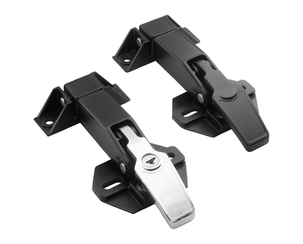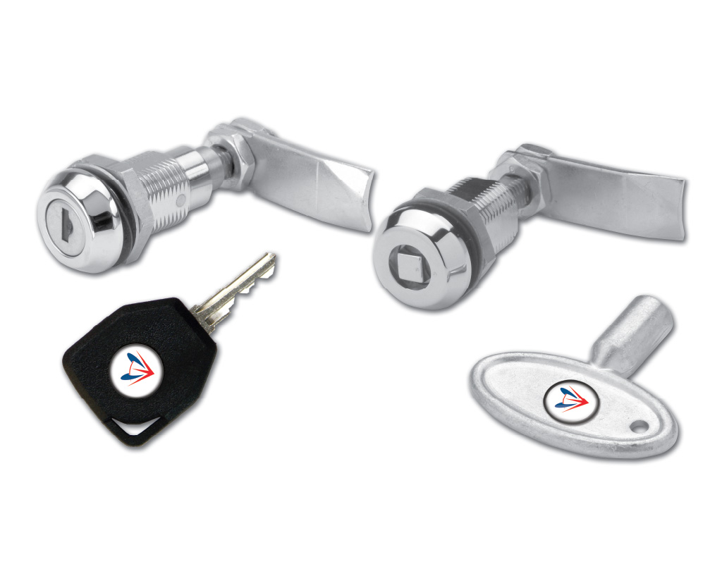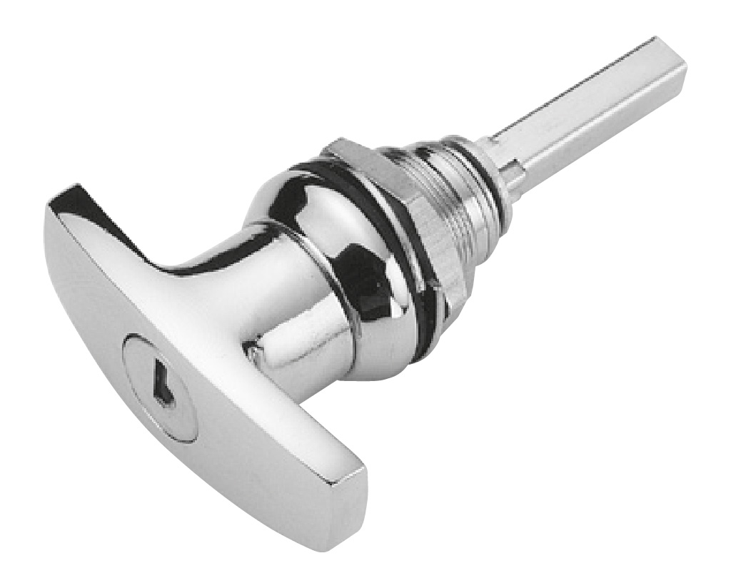 Water-resistant, fully adjustable lock design, intended for use with gasketed doors, which provides 6mm of compression to make a firm seal.