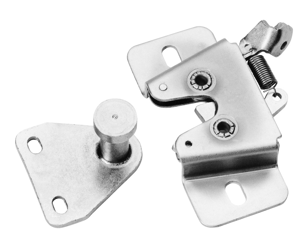 The robust catch incorporates a strong coil spring, which gives leveraged over-centre action against a stainless steel rod, mounted on a striker plate, with slotted mounting holes to allow for easy adjustment.