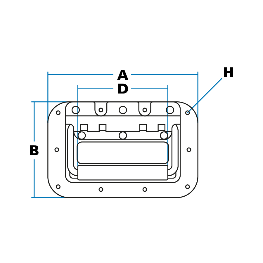 Angle of opening 85°. Consult engineering drawing for position of (10) fixing holes. Panel cut-out dimensions 75mm x 127mm.