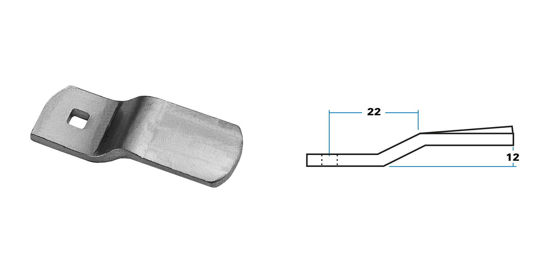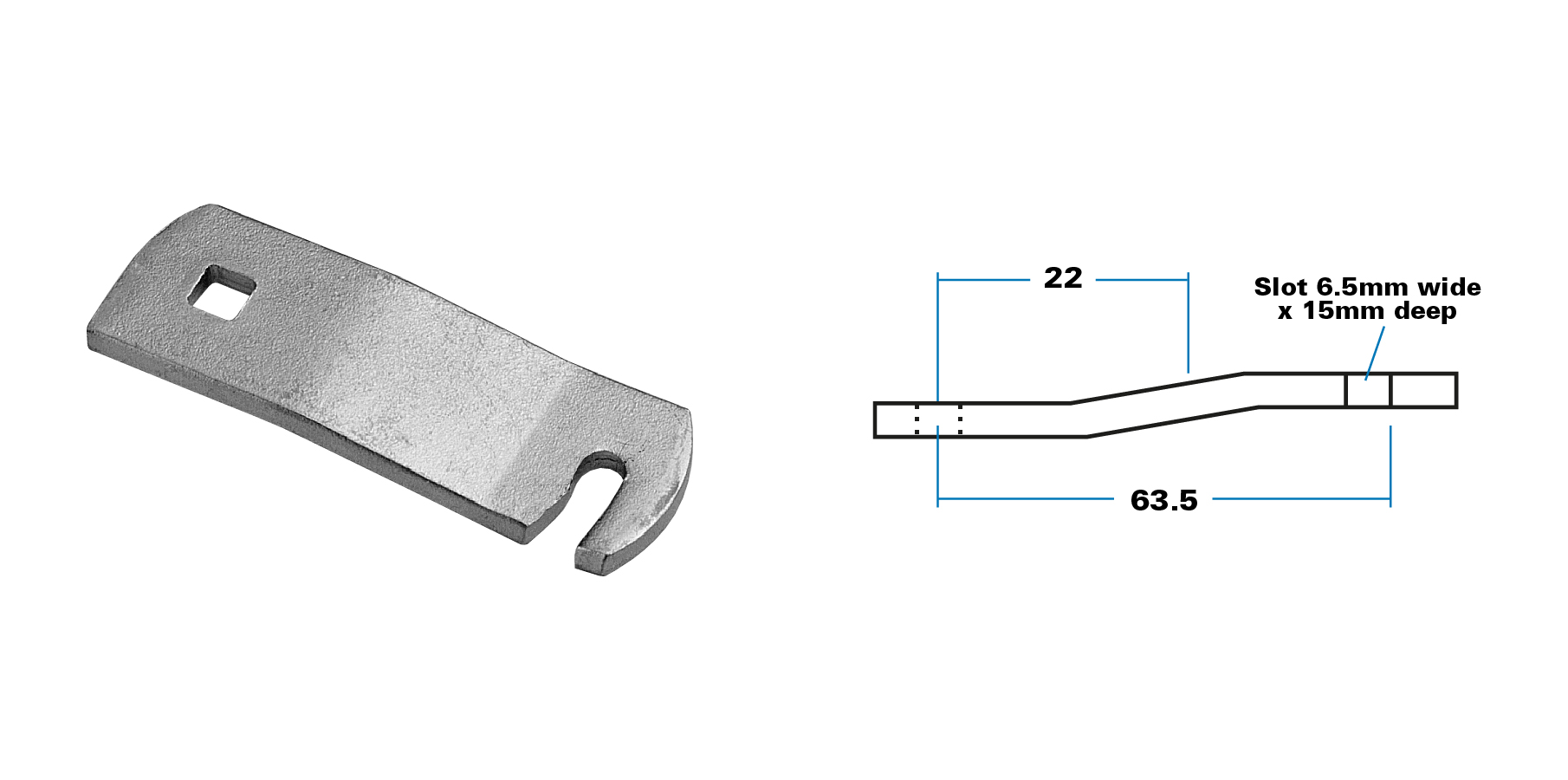 Heavy-duty latch bars, made in rolled-edge mild steel, 30 mm width x 5 mm deep, with 3 mm ‘V’ raise for cam-action.