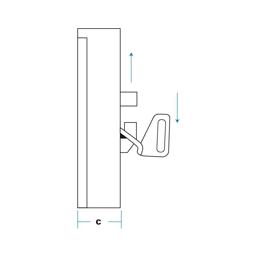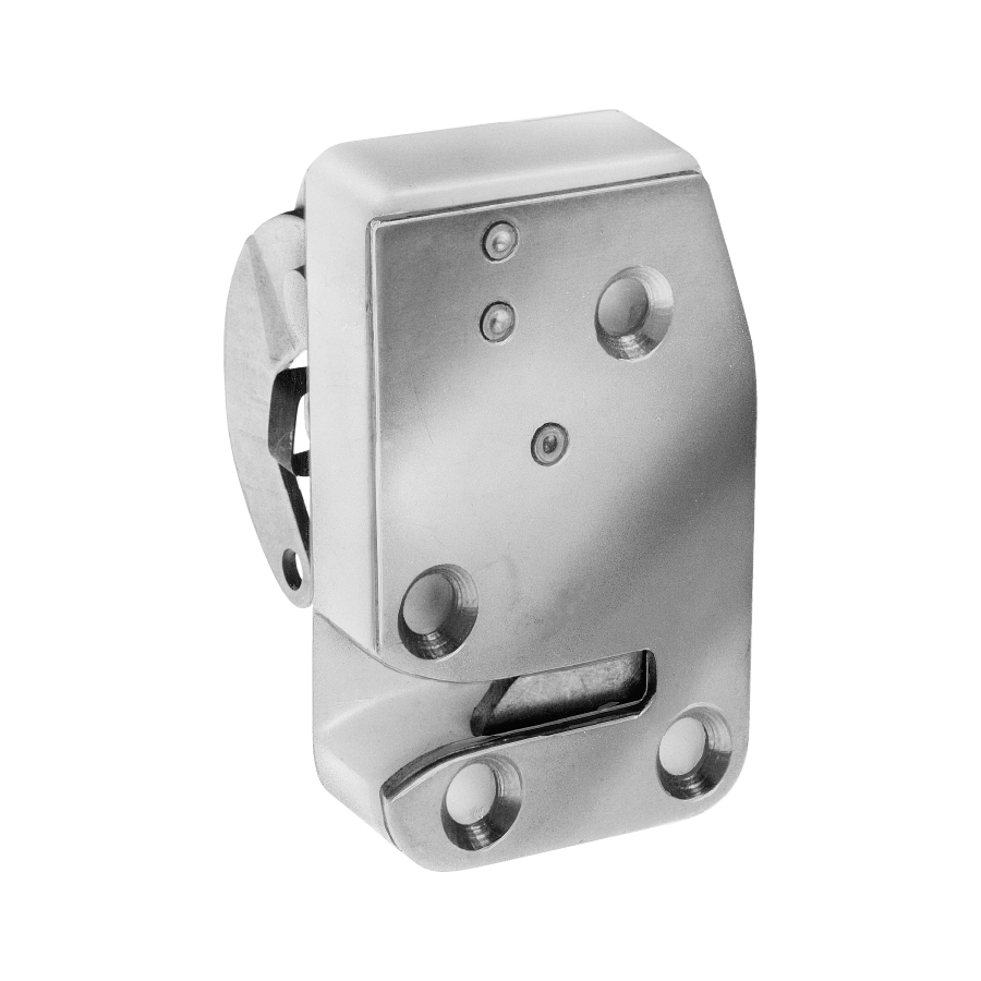 - Striker loop engages with a slotted steel disc with 2-stage action, and is released by (outside) push-plate or (inside) latching lever. The separate locking levers block operation of latch release.
