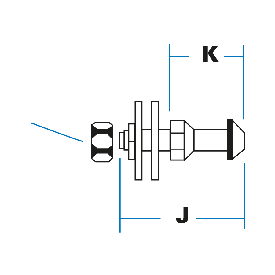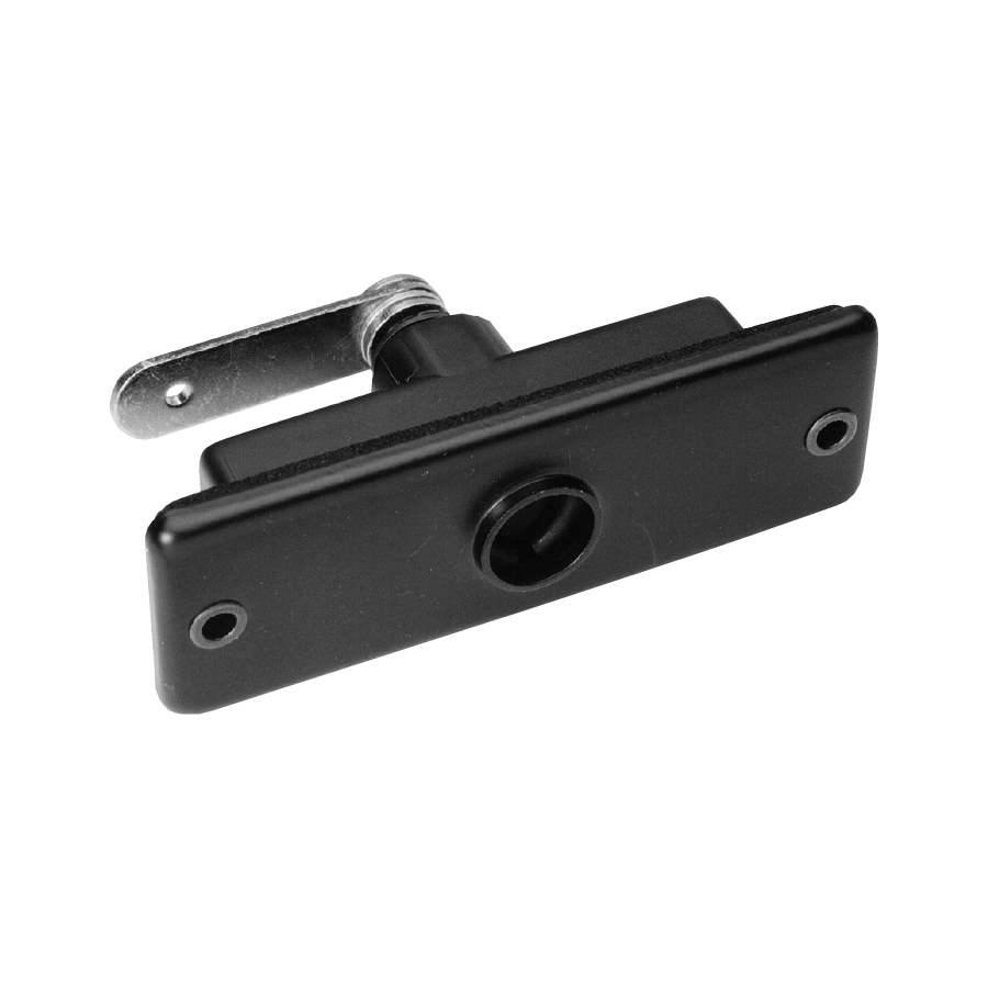 - Holdback is inserted through panel cut-out and fixed through two hollow rivets in steel faceplate. (Handle can be attached separately). Striker pin threaded and provided with nut and washers.