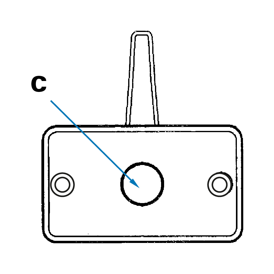 - Holdback is inserted through panel cut-out and fixed through two hollow rivets. (Handle can be attached separately). Striker pin threaded and provided with nut, washers and moulded ‘buffer’.