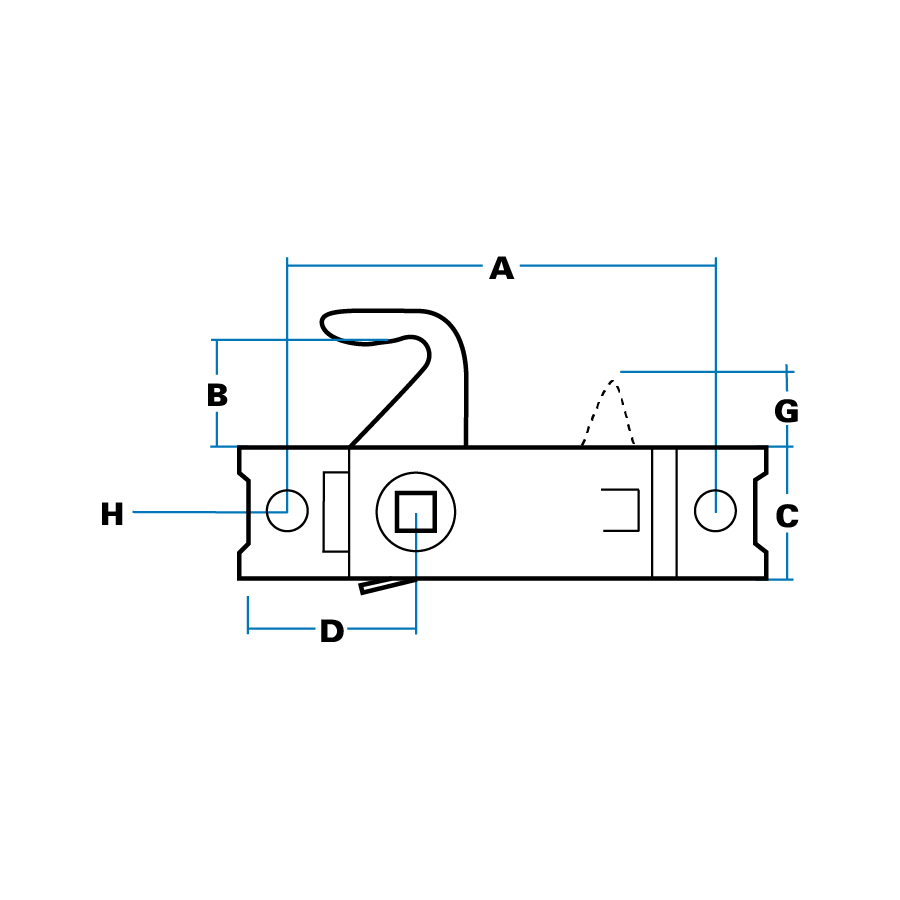 - ‘Handed’ for 90° operation, LH/RH as shown, with deadbolt held positively in both ‘open’ and ‘shut’ positions by fitted spring. Note that tip of bolt will project from case when bolt is withdrawn.