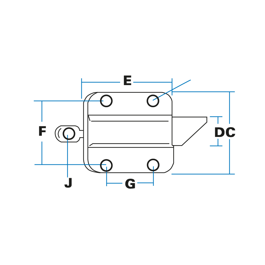- Mount on door moving vertically downwards, latch slams against a ramped striker plate.