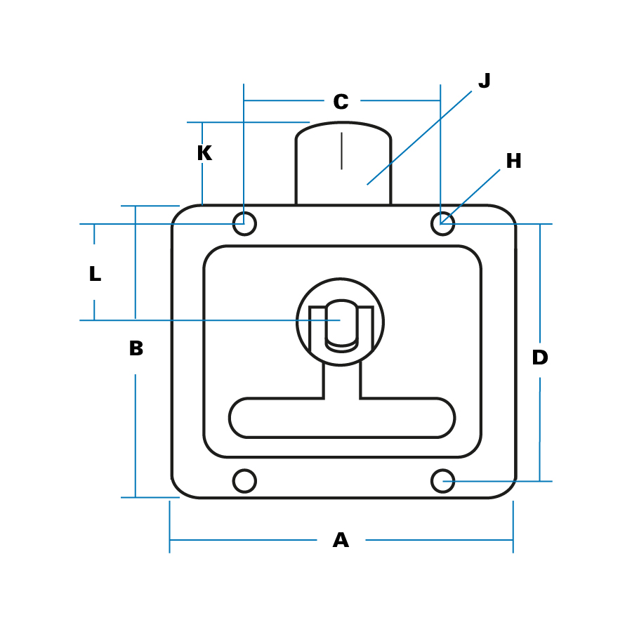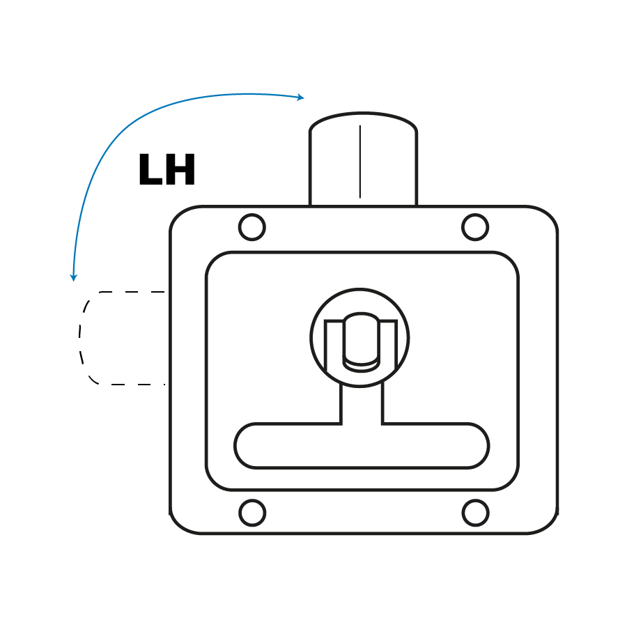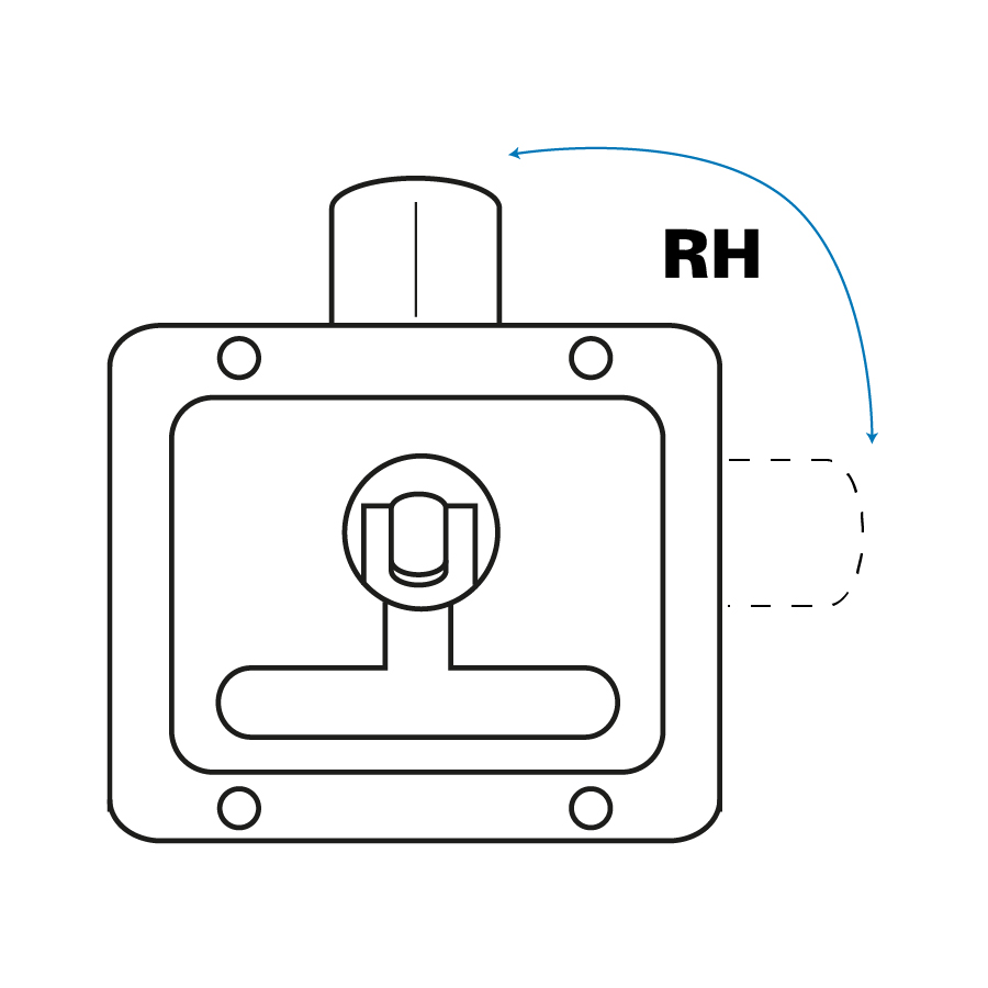 - Latch travels 90° from centre (rest) position against ‘stops’ and is ‘handed’ LH or RH (not reversible).