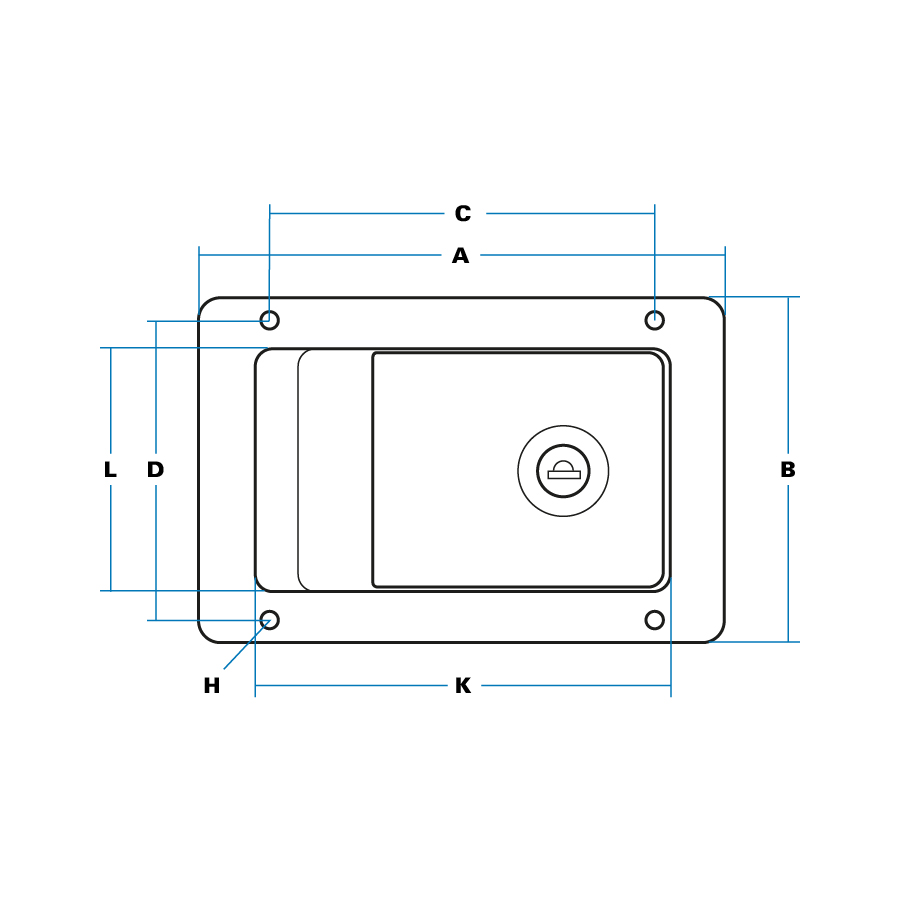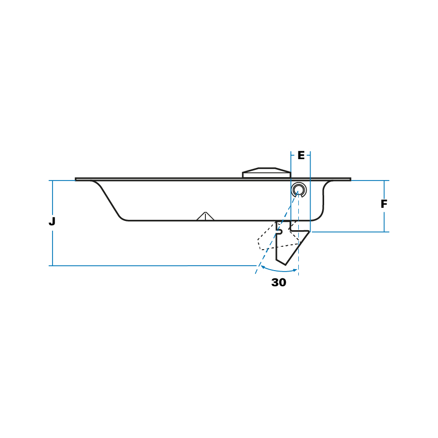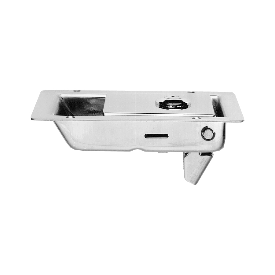 - Deep dish (30 mm) with internal finger-shield and beaded edge on flap for easy operation. Stainless locking bolt slides on carrier, giving protection against flap being forced. Extra-wide ‘hook’ (30 mm) for good engagement and seating.