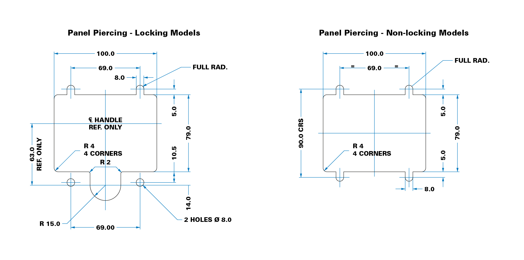 Home | Products | Latching Systems | ‘Drop-T’ Models Standard Panel Piercing Dimensions
