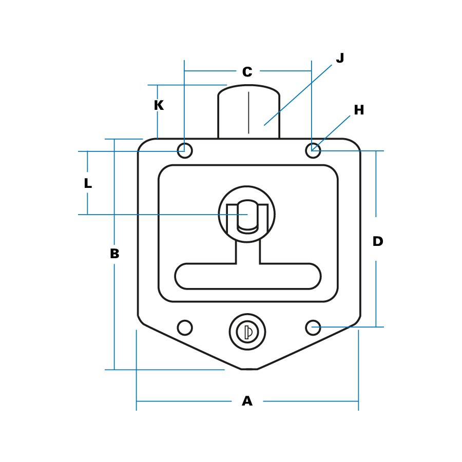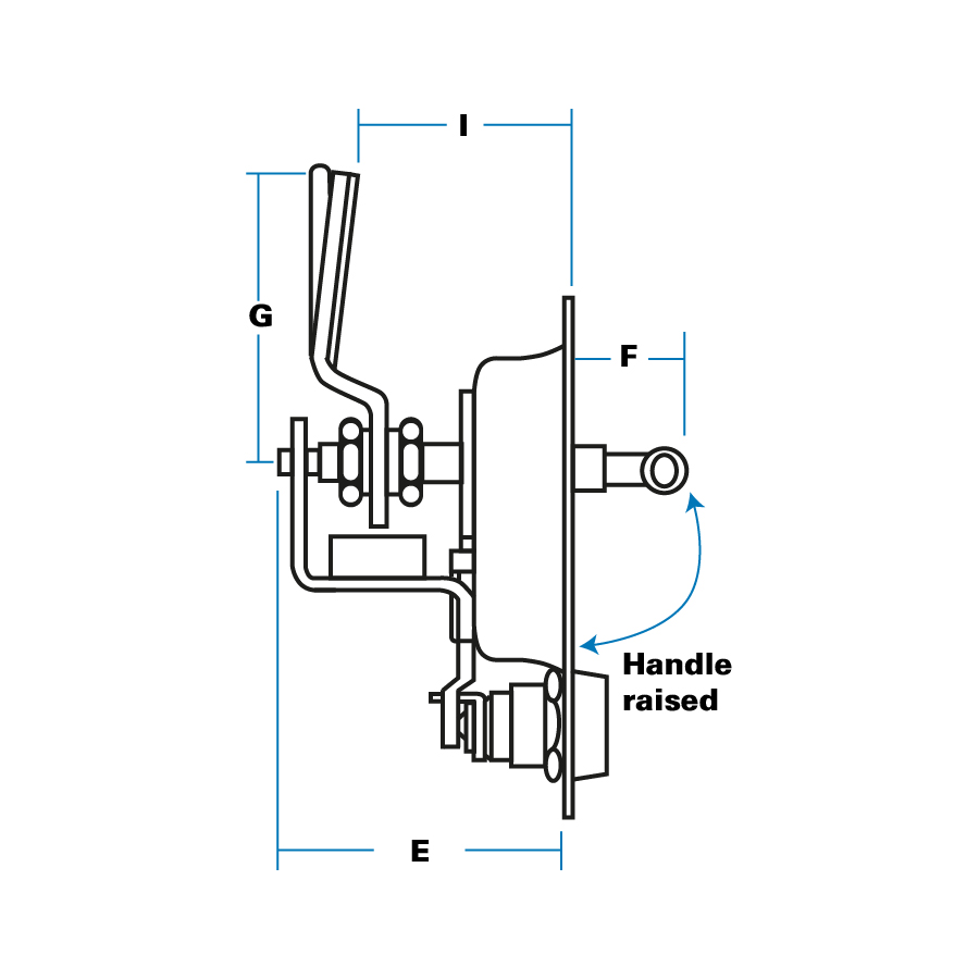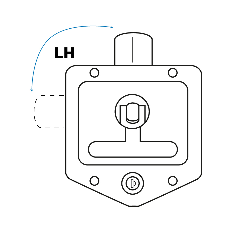 - Latch travels 90 degrees from centre against ‘stops’ and is ‘handed’ LH or RH as specified, non-reversible.