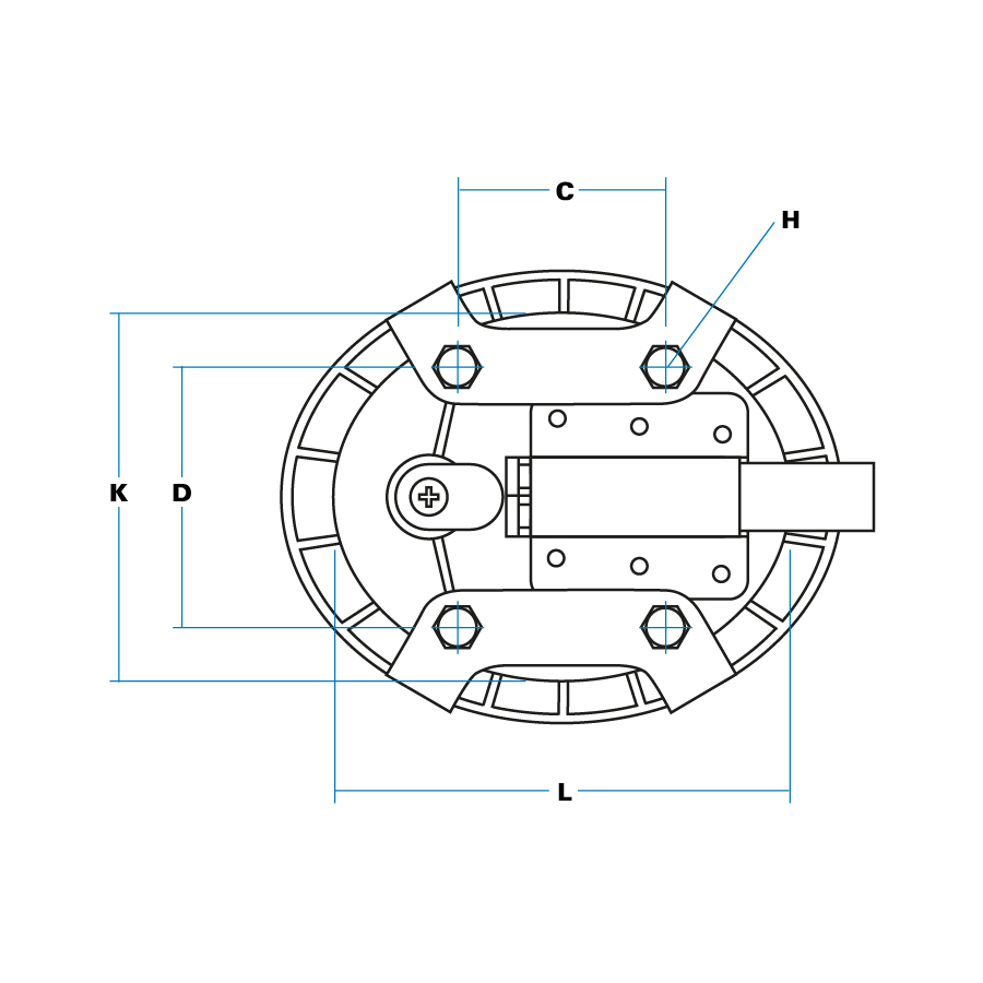 - Unit fits through aperture, is clamped against panel by two shaped brackets, and secured by bolts into four threaded bosses. Gasket provided.