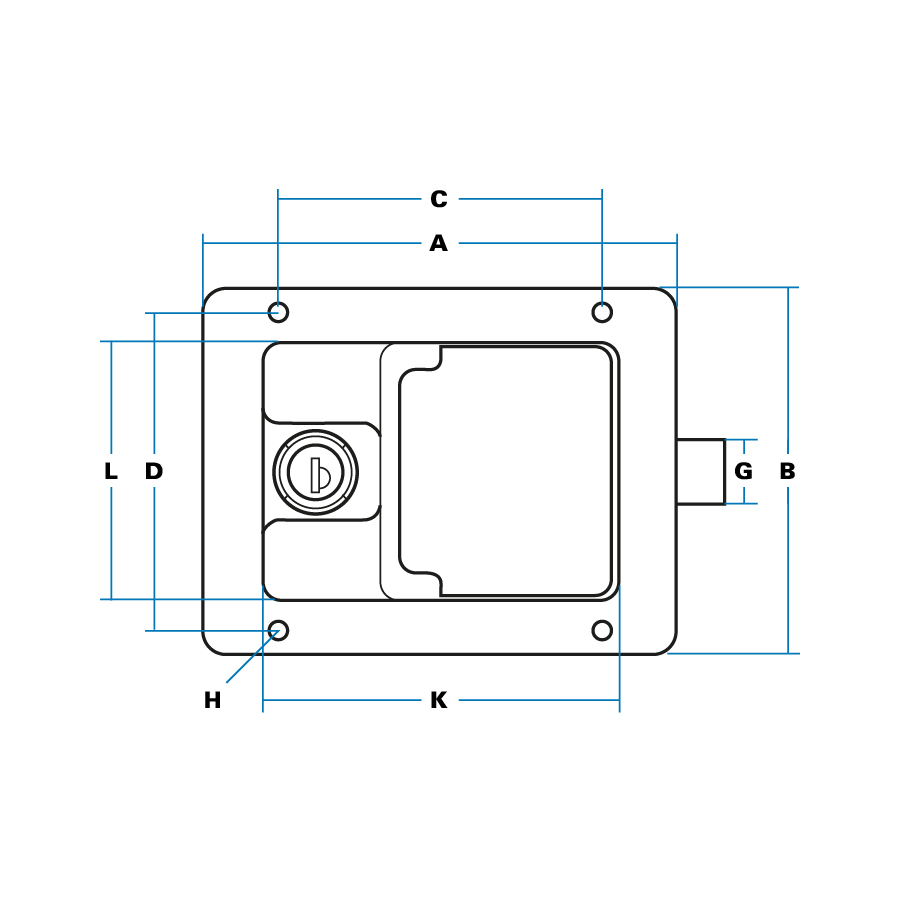- Locking with key blocks movement of flap, but slam bolt is still free to operate and can be opened from inside (“Deadlocking” is a special option).