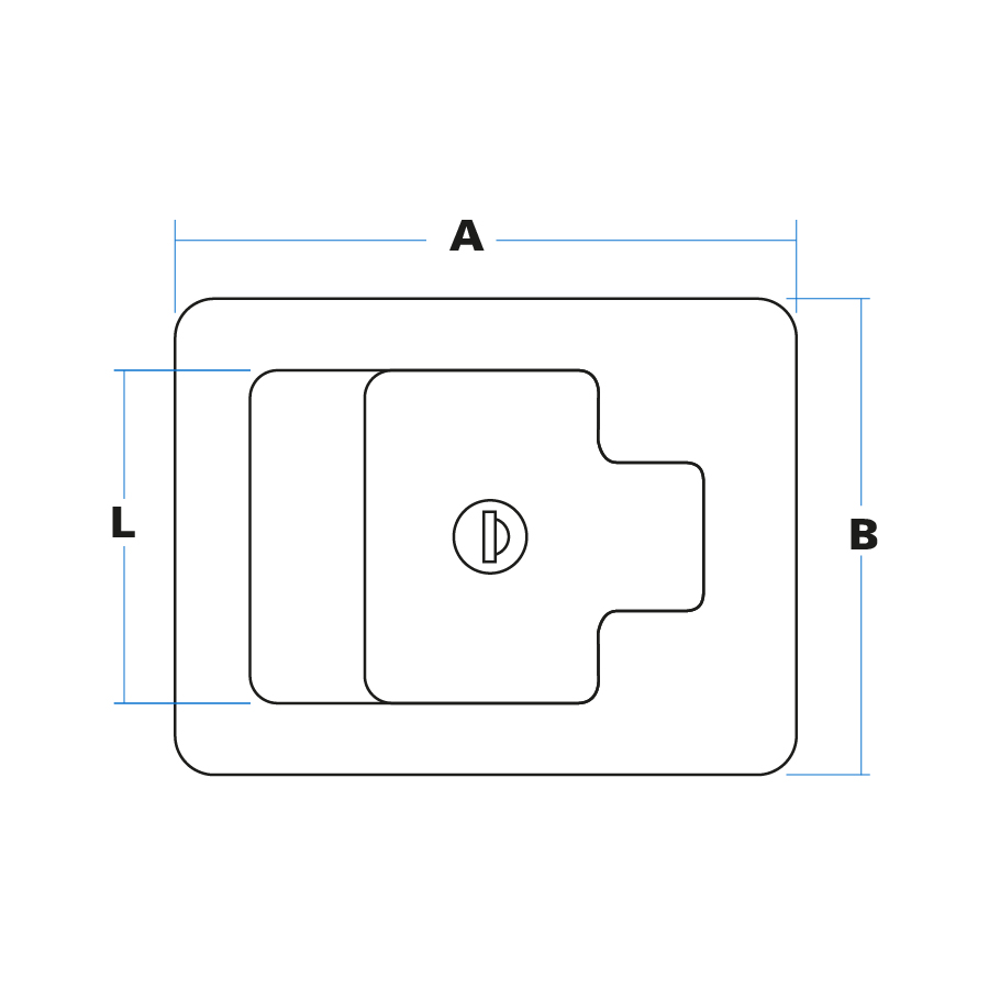 These paddles are weatherproof, lightweight, and acoustically ‘quiet’. Flush-fitting, and with no visible mounting points, they can be quickly installed in the same aperture as our standard rectangular ‘paddles’ using ‘U’ bracket and bolts provided. A loop-striker (in stainless steel) ensures positive engagement to resist vibration.