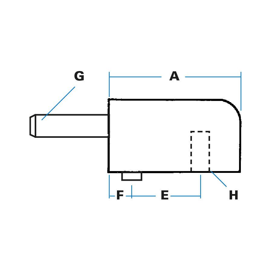 | Two-hole design (60mm only) With this option the ‘peg’ is replaced by a second tapped hole at the same location. |