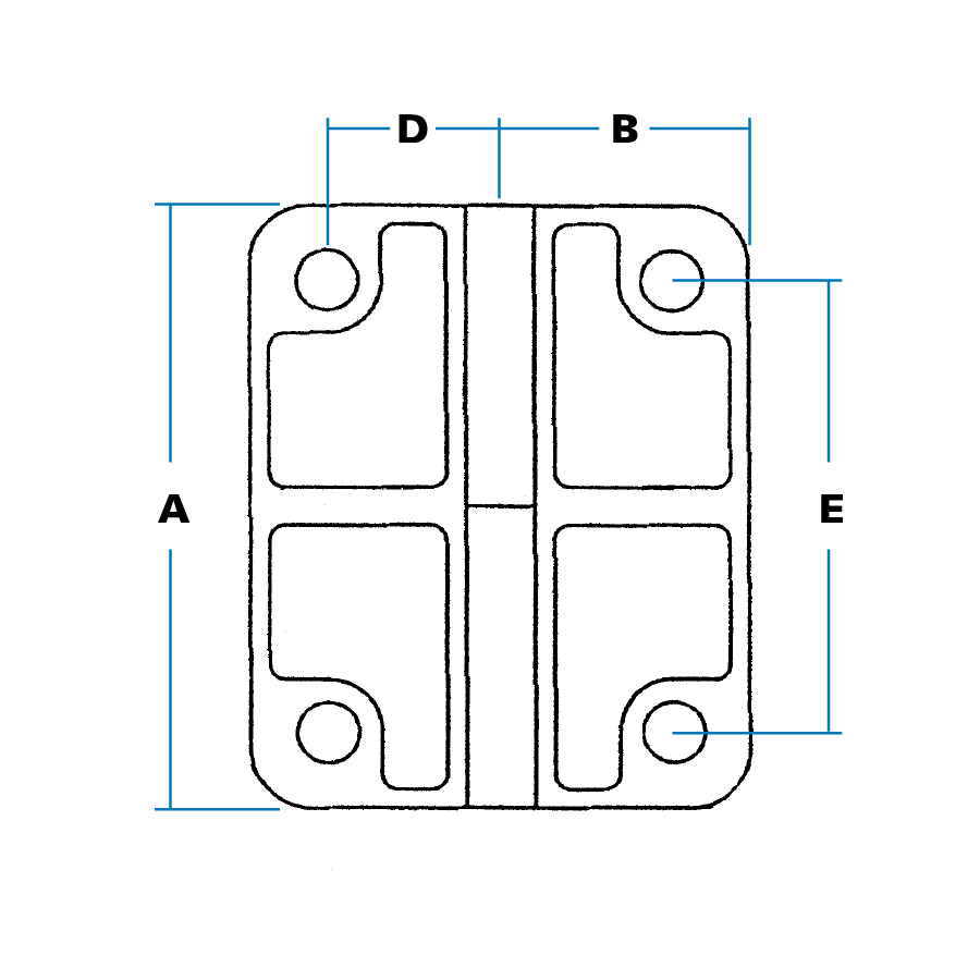 - Fixing by two threaded studs M8 x 12 mm, cast-in each leaf.